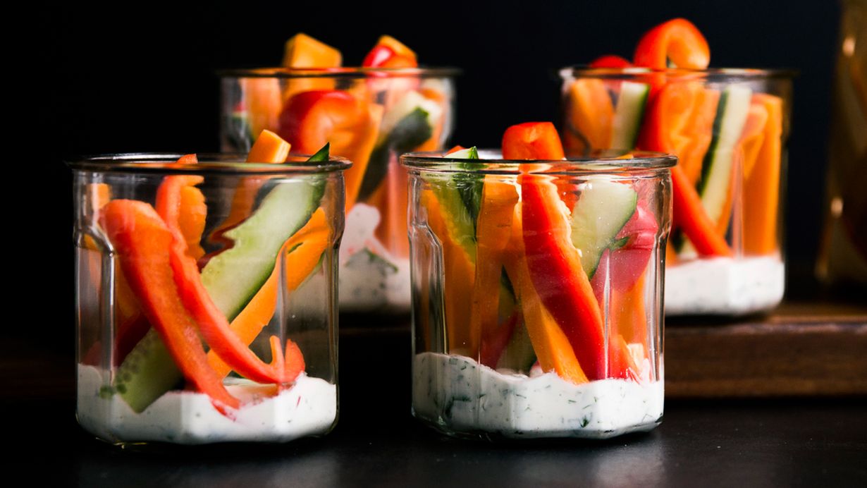Kokoa eväspurkit muovi- tai lasipurkkeihin. Lusikoi pohjalle ensin dippiä ja asettele vihannestikut dippiin. Sulje korkki ja ota mukaan eväsretkelle.