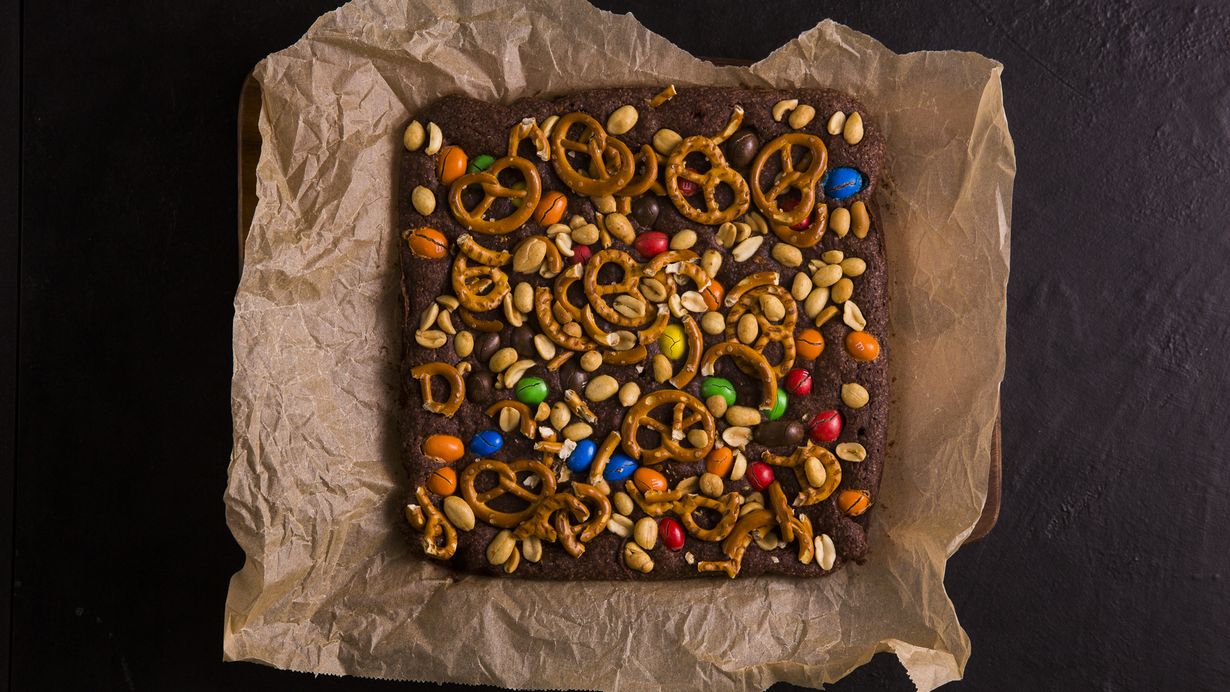 Browniepalat ovat ihanan tahmea ja suklainen amerikkalainen herkku. Todellisen juhlatarjottavan saat koristelemalla brownien karkeilla, suolapähkinöillä ja mini-prezeleillä.