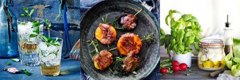 Hedelmä-parmankinkkukääröt: Kinkkuun kääräisty luumu tai aprikoosi on mahtava makupala. Grillaa niihin kaunis väri ja asettele tarjolle rosmariinitikuissa.