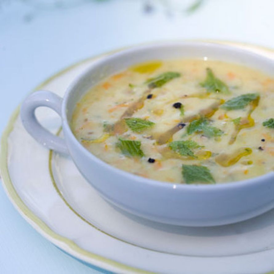 7. Valmista minttuöljy soseuttamalla mintunlehdet öljyn sekaan. Viimeistele keiton pinta öljyllä.