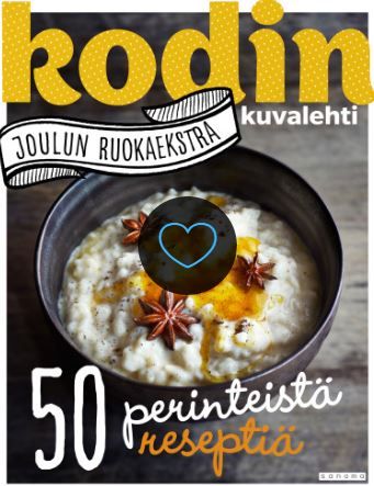 Kokosimme Kodin Kuvalehden perinteiset jouluruokareseptit yhteen pakettiin. Jouluruokaekstrasta löydät niin laatikot kuin parhaat joululeivonnaiset. Yhteensä digilehdessä on 50 testattua reseptiä ja upeaa kuvaa!
