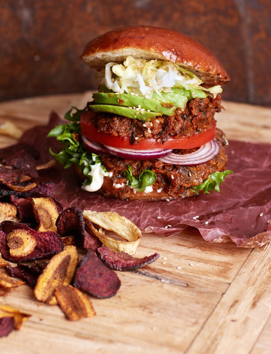Kasvisburgereiden ystävä tietää jo hyvin, että mehevä hamppari ei kaipaa lihaa. Mutta harva maistaja arvaa, että tämän ennätyksellisen mehevän burgerin nyhtistäyte on tehty juuri bataatista ja herkkusienistä. Maista vaikka!