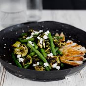 Lisää sitruuna-munaliemi keittoon ja sekoita. Älä kiehauta enää.