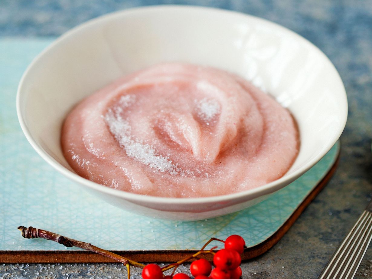 Keitä pihlajanmarjoja vedessä 15 minuuttia. Siivilöi mehu toiseen kattilaan.