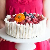 Paina raparperit ja mansikat syvälle taikinan pinnalle muutaman sentin välein.