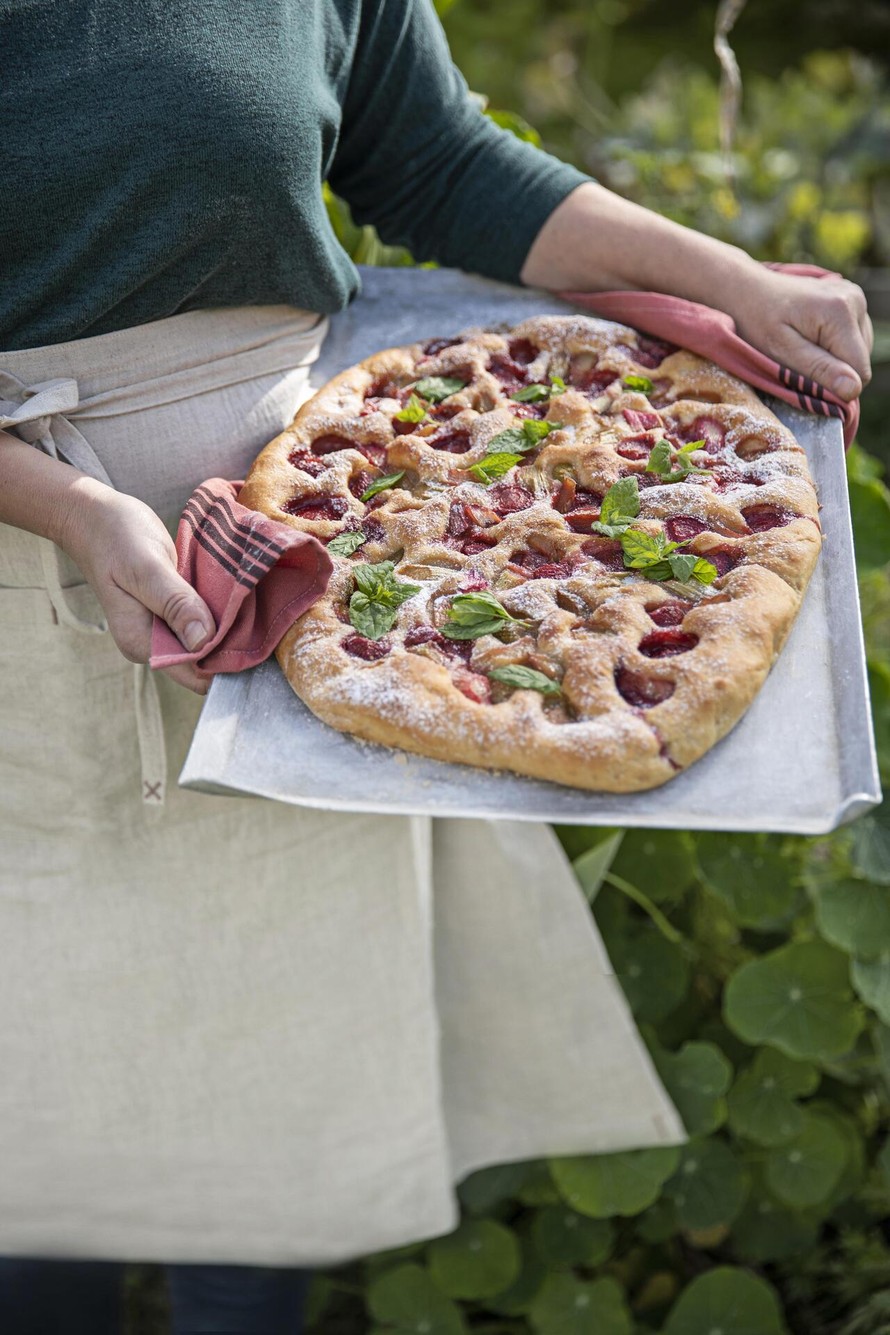 Takapihan monikäyttömestari, raparperi, sopii täydellisesti mehevään, makeaan focacciaan.