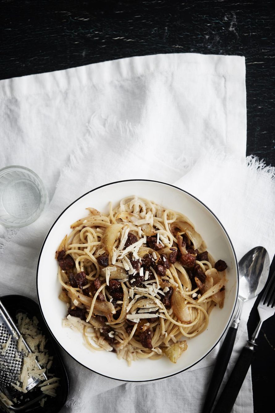 Tuhti ja ihana pasta carbonara onnistuu helposti myös vegaanisena