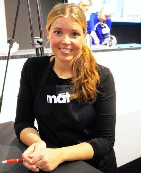 Istuin seuraamassa puolen tunnin ajan ruokatoimittajakollegani Sophie Berlinin demoa karpalomazariinin valmistuksesta. Allt om mat -lehdellä oli iso osasto ja paljon kivoja, omia keittokirjojaan myytävänä. Sophie kertoi olevansa kahden pienen lapsen äitiyslomalla oleva äiti ja piti vain yhden näytöksen messuilla.