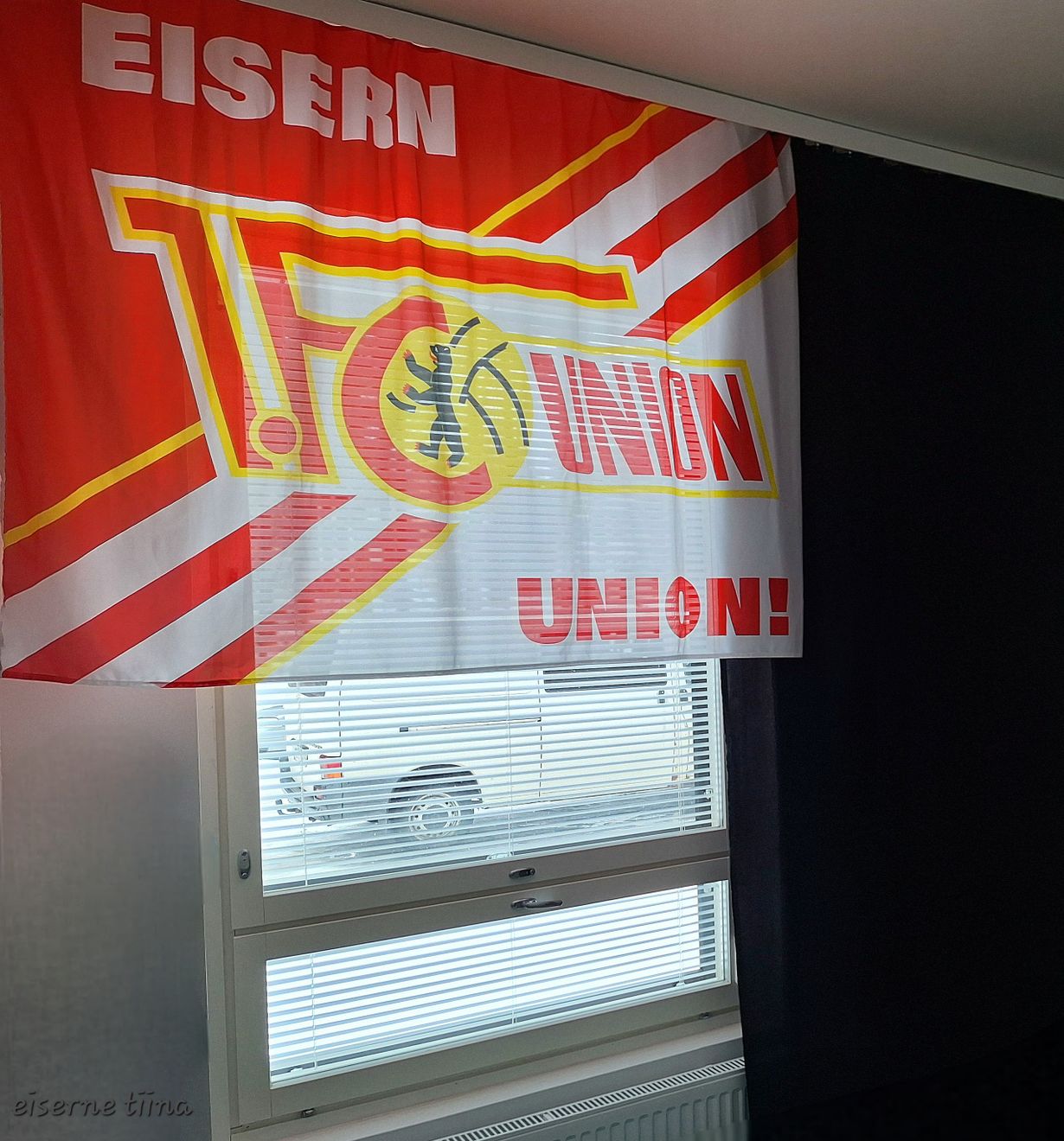 Vuonna 2021 kannattamani Bundesliigajoukkue 1 FC Union Berlin saapui Helsinkiin pelaamaan Kuopion Palloseuraa vastaan. Ystäviäni Berliinistä matkusti peliin, tapasimme Helsingissä ja kannustimme yhdessä joukkuettamme Olympiastadionilla. Yksi ystävistäni oli tuonut mukanaan isokokoisen kannatuslipun, joka komeili Olympiastadionin katsomossa pelin ajan - ja pelin jälkeen ystäväni lahjoitti lipun minulle. Nyt komea lippu koristaa makuuhuoneemme ikkunaa.