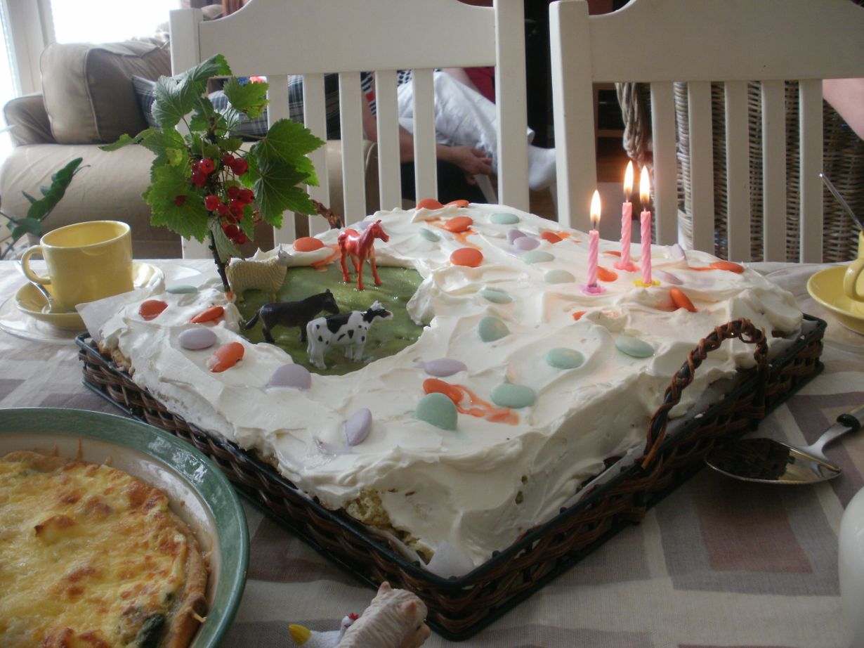 Tämä ihana arki: täytekakku 3-vuotis kakku 16.4.2013 klo 13:35 Tyttäremme tykkää leikkiä pikkueläimillä ja niinpä ne pääsivät myös kakun päälle koristeeksi. -Kakku-