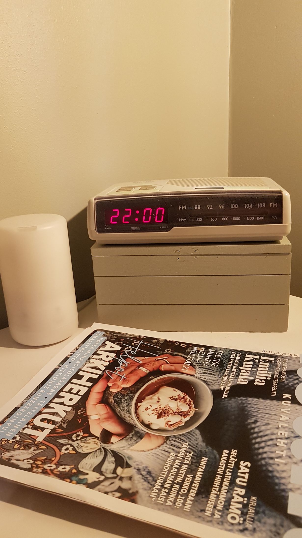 Ostimme tämän kelloradion ensimmäiseen omaan kotiimme vuonna 1990. Se toimii edelleen ja herättääkin tarvittaessa.