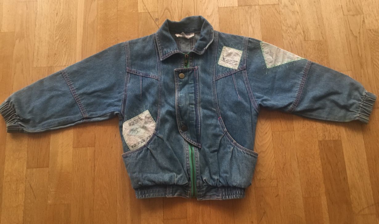 Vanhin vaatteeni on lapsuudesta säästämäni farkkutakki, jonka olen säästänyt muistona. Farkkutakissa on 80-luvun muotia ”feikkipaikkauksilla” ja kulutetulla pinnalla.