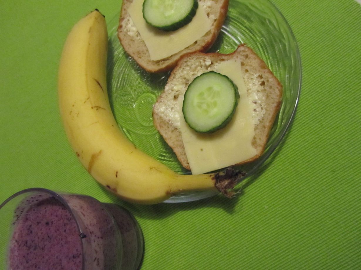 Aamiaseeni sisältyy sämpylä puolitettuna, päällä juustoa ja kurkkua!