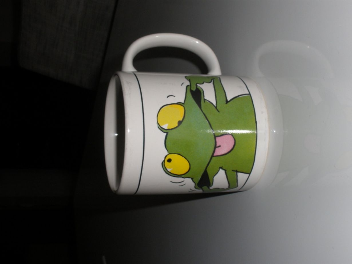 Tuosta mukista kun juo kahvinsa niin melkein irvistää sammakolle takaisin. Häviää mahdolliset känkkäränkätkin.