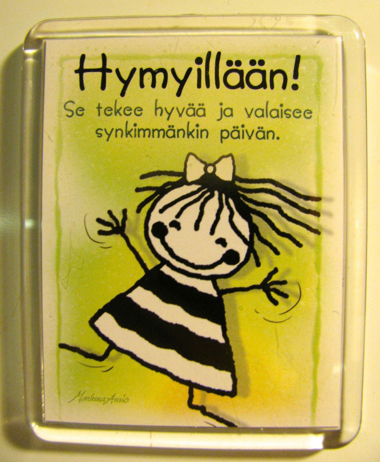 Tätä ihanan positiivista jääkaappimagneettia katsoessani jääkaapin ovessa en voi muuta kuin tulla hyvälle tuulelle ja hymyillä. :)