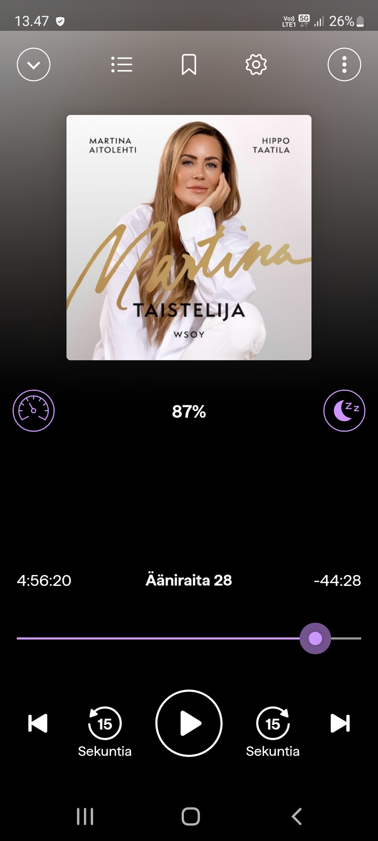 Lähetä kuvakisaan kuva kirjasta, jota olet lukemassa - voita NOSH -lahjakortti! Äänikirja Martinasta Tanja81 24.8.2022 klo 21:18 Tällä hetkellä en lue vaan kuuntelen elämäni ensimmäistä äänikirjaa.