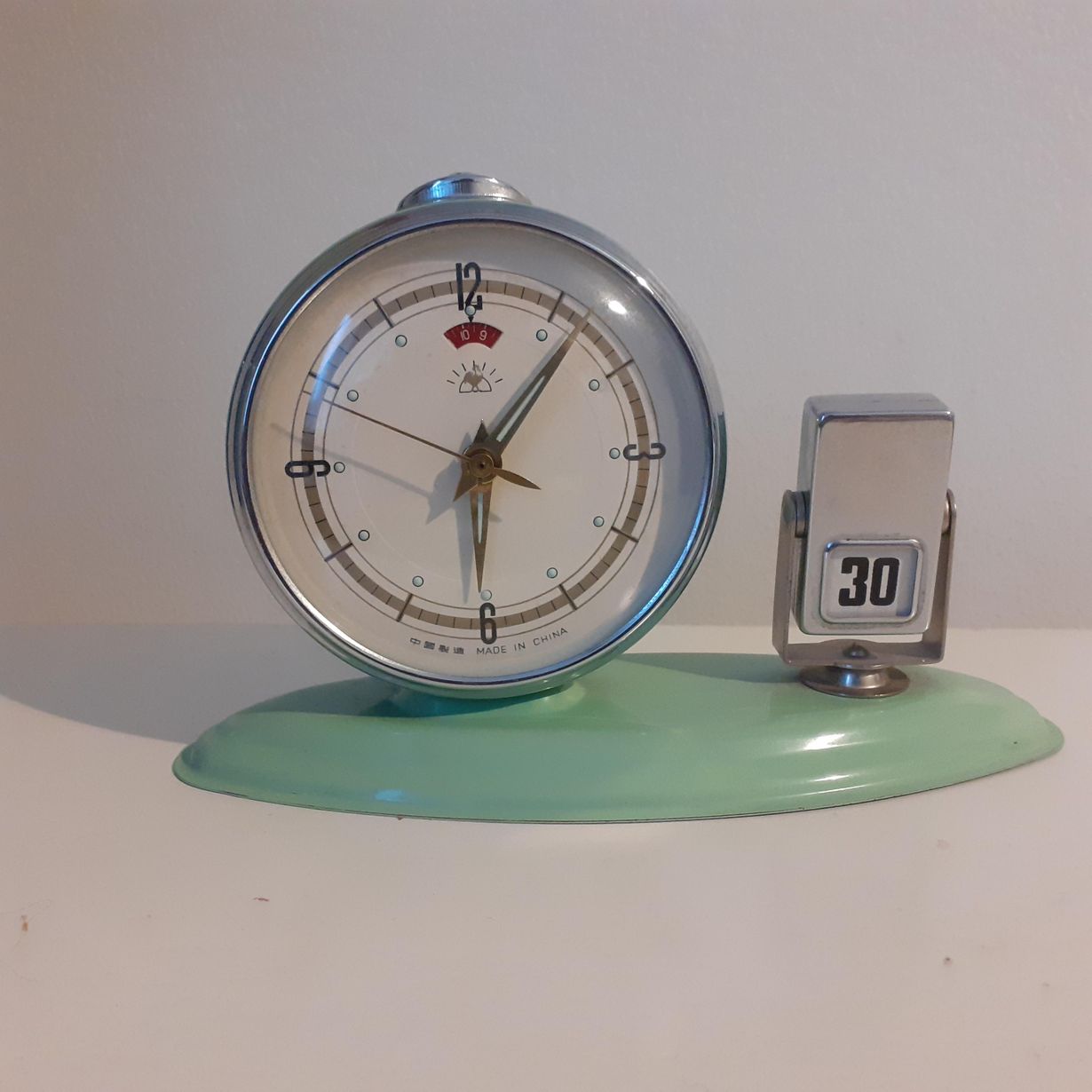 Tämä ikivanha vedettävä herätyskello löytyi kun autoin sukulaistani siivoamaan ostamaansa vanhaa taloa. Kello oli paksun likakerroksen peittämä, mutta kun koitimme vetää sen käyntiin, toimi se moitteetta! Ikävä kyllä kellon koneiston tikitys on niin äänekäs, ettei samassa huoneessa sen kanssa nukkumisesta tule yhtään mitään. Palokelloa muistuttava räminä herättäisi kuolleetkin, ja naapurirauhan nimissä en sitä kovin usein käytä. Äänekkäistä ominaisuuksistaan huolimatta on kello minulle suuri aarre!