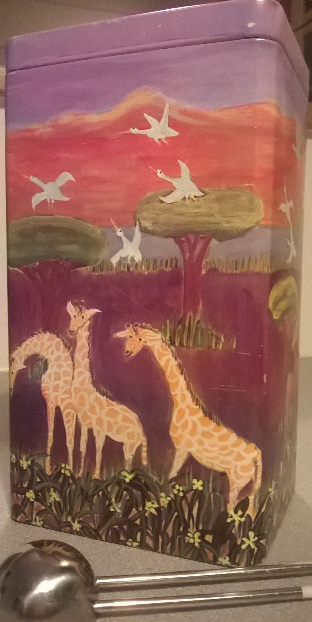Edelleen, joka kerta, kun ryhdyn kahvinkeittoon, purkki ilahduttaa minua. Värit ja eläimet!