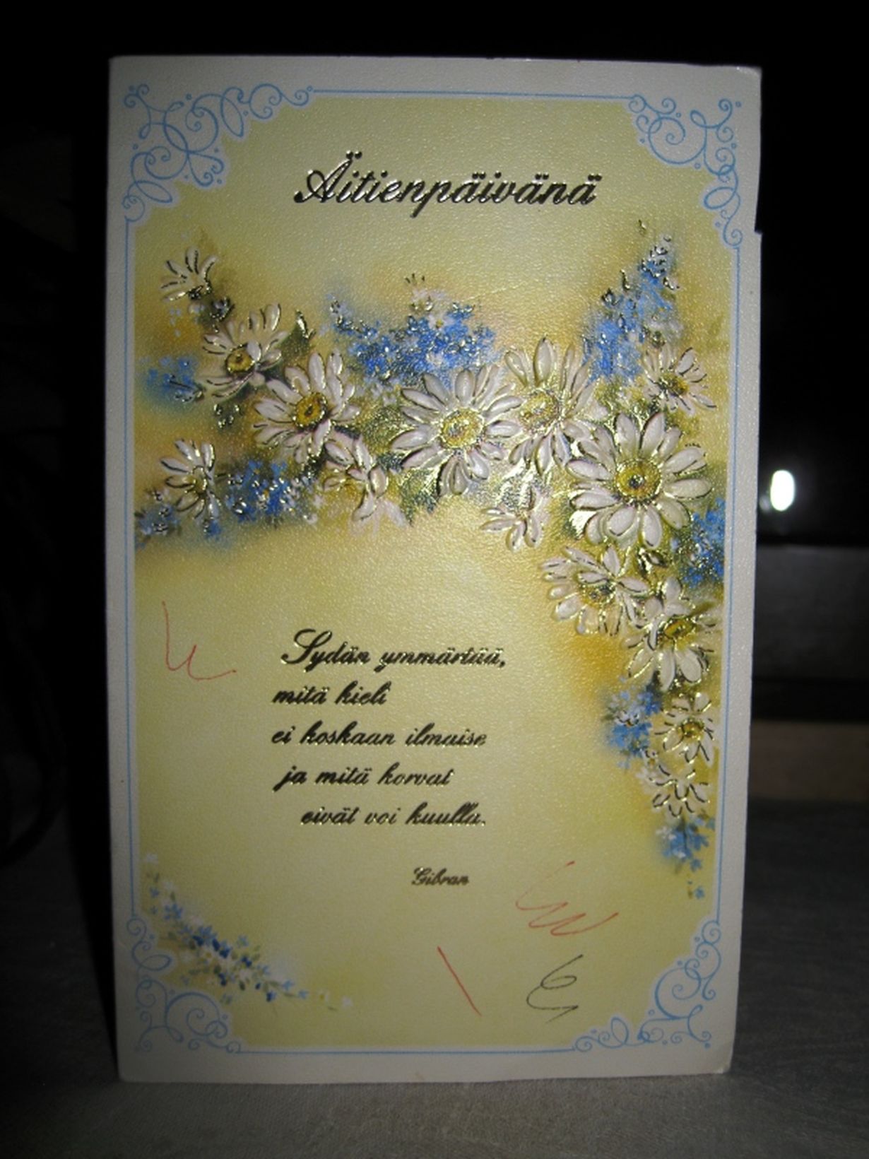 Tämä ihana arki: äitienpäiväkortti Äidille 3.4.2012 klo 20:45 Äitienpäivänä! Sydän ymmärtää, mitä kieli ei koskan ilmaise ja mitä korvat eivät voi kuulla. Gibran