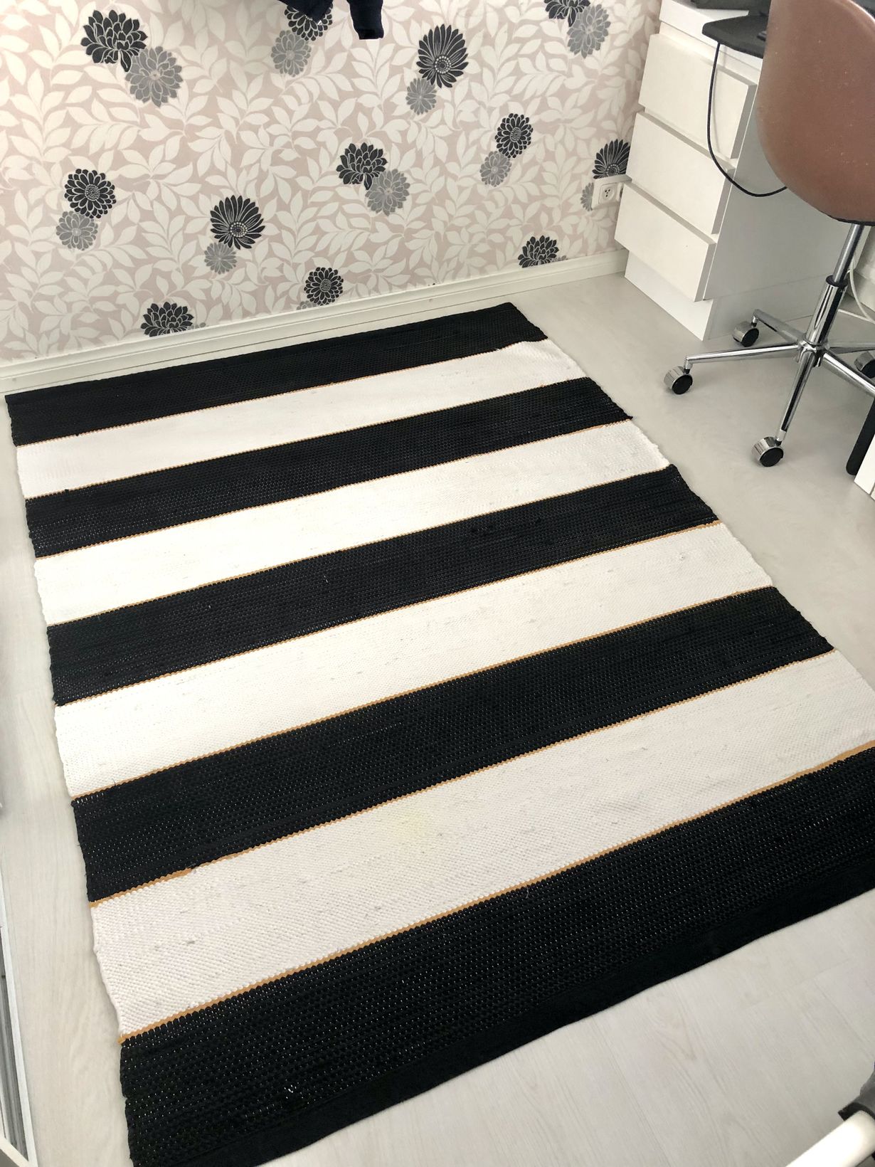 Lähetä kuvakisaan kuva matostasi - voita Arabian Teema-astioita! Äidin kutoma mustavalkoraita Keijotar 20.2.2022 klo 15:41 Äidin 2010-luvulla toiveestani kutoma ”trendi”matto on rakas. Lisättiin hieman okra-raitaa piristykseksi.