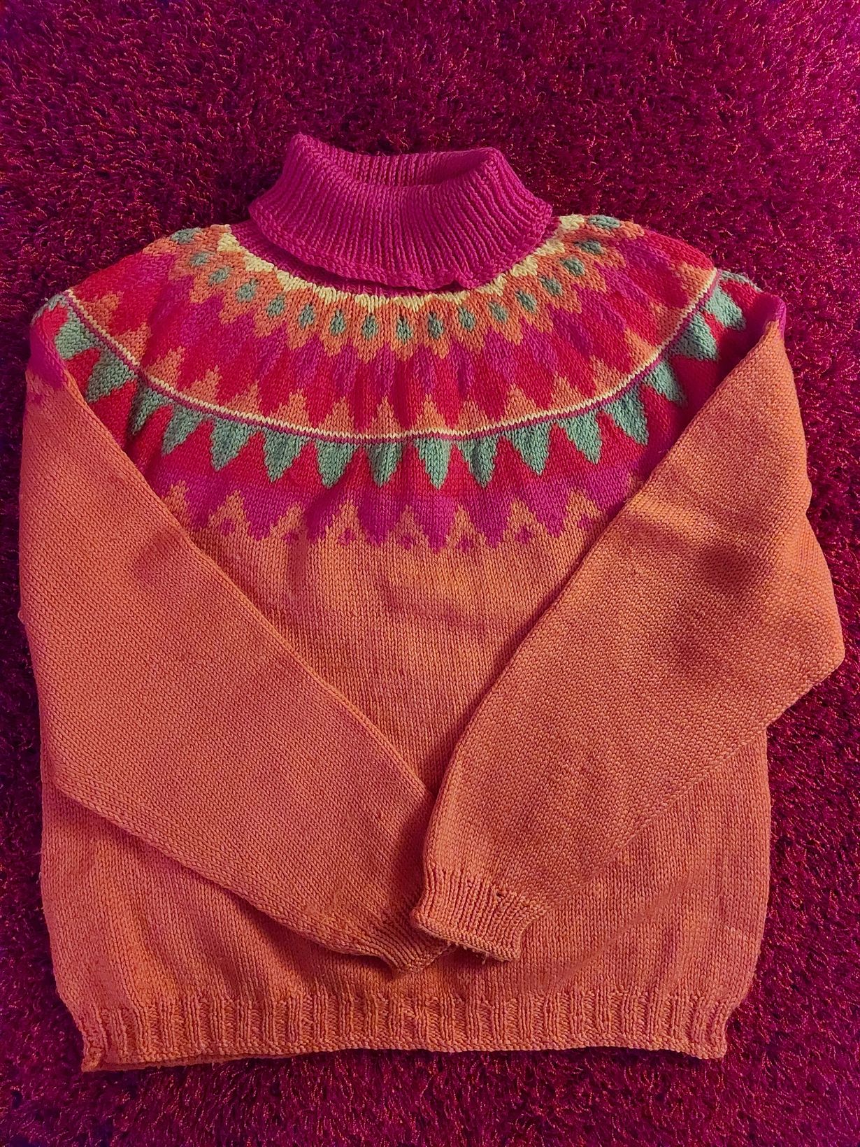 Äiti kutoi minulle n. 15 vuotta sitten tämän villapaidan minulle, minun lempivärein. Äitini kuoli reilu kolme vuotta sitte ja sen vuoksi villpaita on vielä rakkaani.