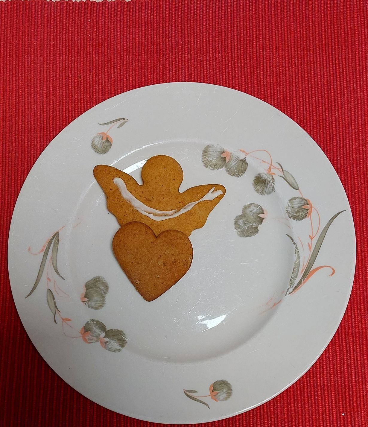 Äiti oli saanut tämän lautasen kummitädiltään kun oli päässyt ripille 19.11.1944. Olen varjellut lautasta 16 vuotta jolloin äiti menehtyi ja minä pelastin sen hävityksestä. Olen käyttänyt lautasta pipareiden tarjoilulautasena.
