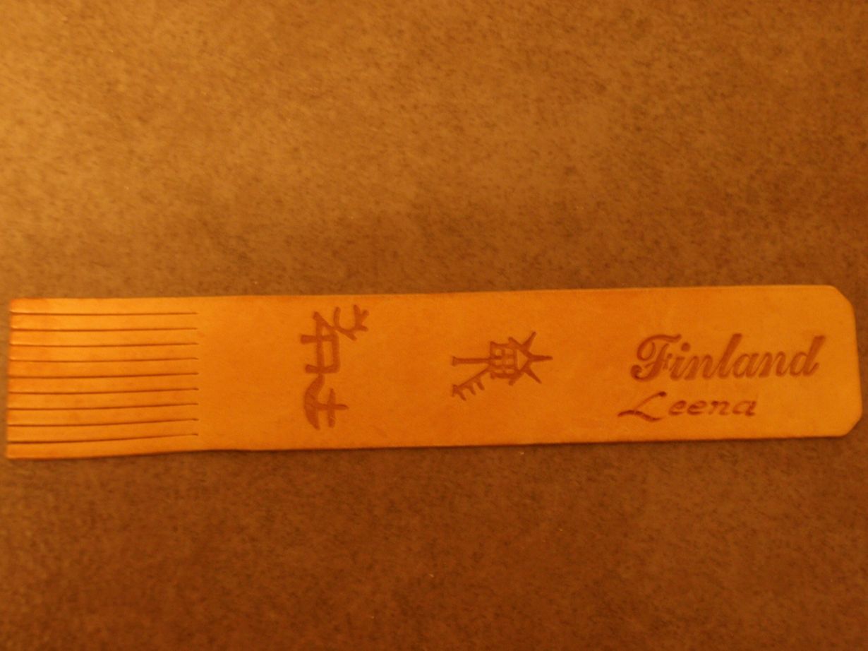 Olen saanut kirjanmerkin äidiltä Lapinreissun tuliaisena n. 35 vuotta sitten. Nimikoituna se tuntuu jotenkin henkilökohtaisemmalta, kuin ihan muuten vaan ostettu "nahkasuikale".