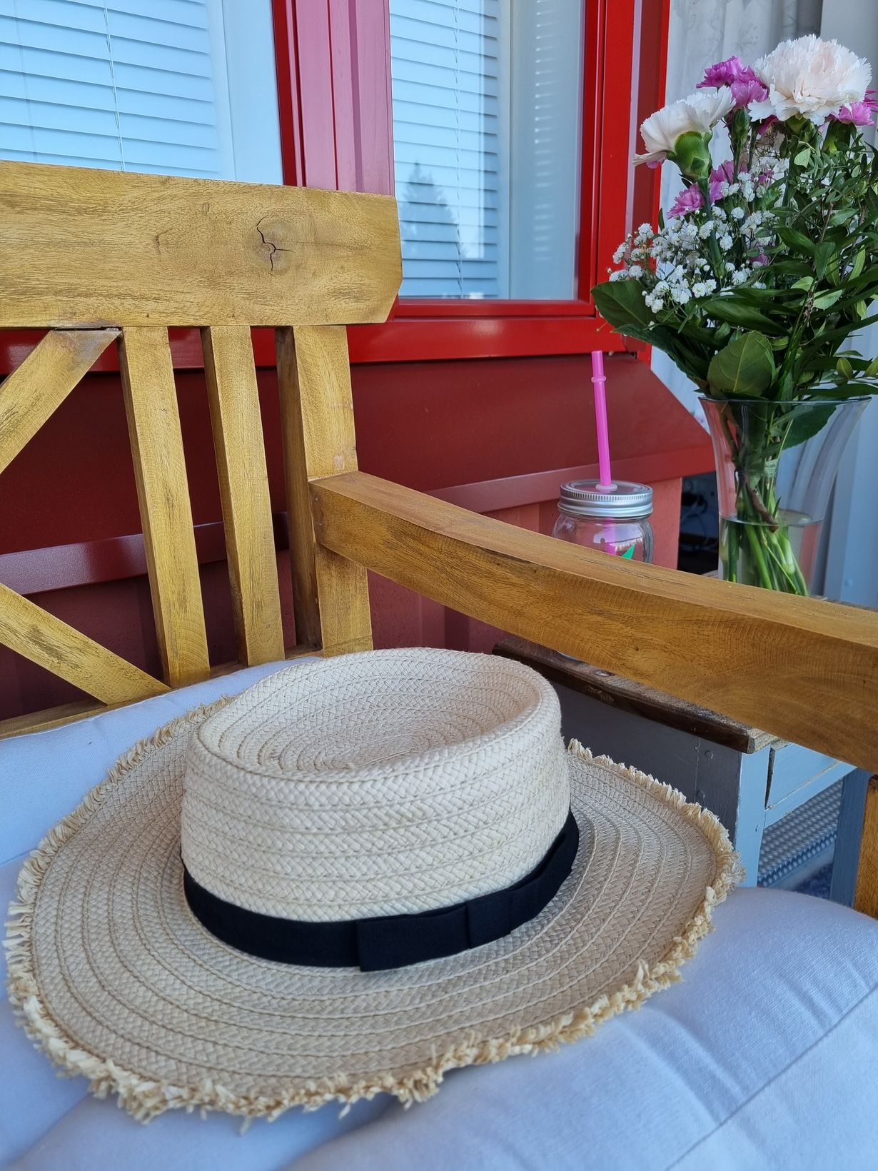Nuorempana en olisi voinut kuvitellakaan kulkevani aurinkohattu päässä. Nykyään, 35-vuotiaana, hattu on laitettava päähän jottei päänahka pala. Hatussa on rennot hapsut ja söpö musta rusetti. Kesä alkaa, kun laitan hatun taas päähäni.