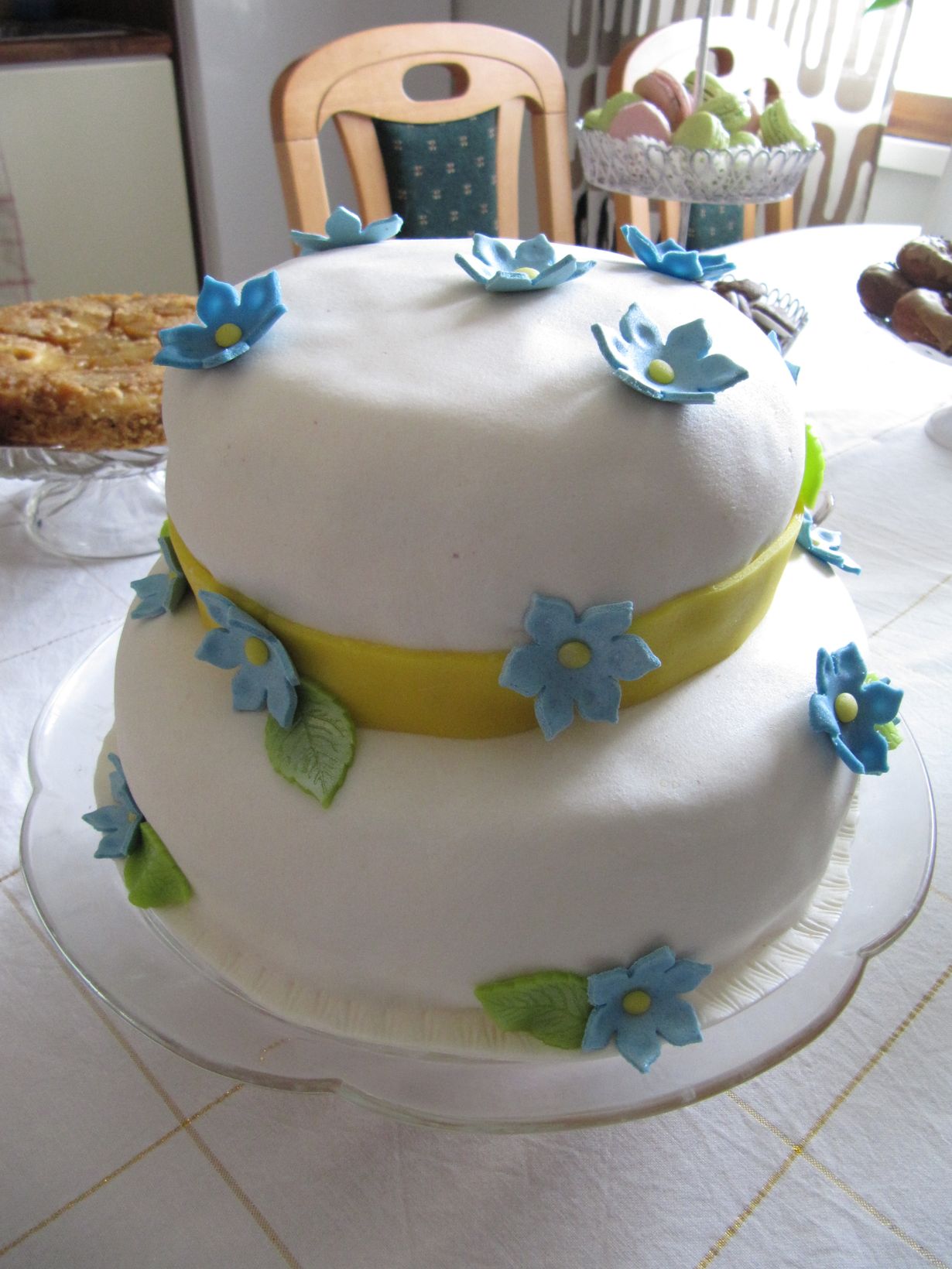 Viime äitienpäivänä juhlimme iäkästä äitiämme ja tietysti muitakin paikalla olleita äitejä. Minä vanhempana tyttärenä tein kakun, oman tyttäreni avustaessa koristelussa.