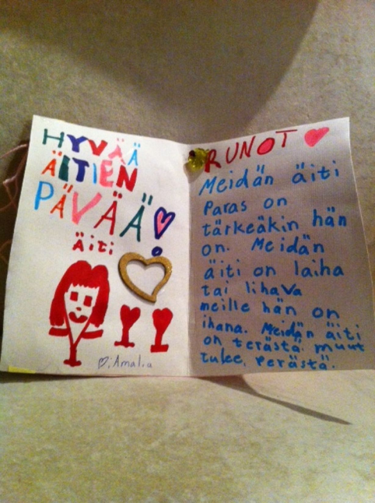 Amalia 9 v teki ihanan äitienpäiväkortin