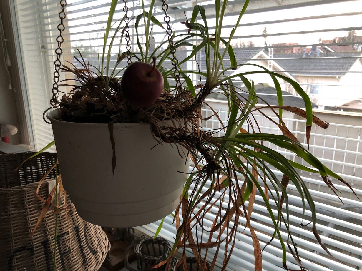 Viherkasvi (en tiedä mikä se oikeasti edes on) tuli alunperin äitienpäivälahjana pojan päiväkotiaikana. Olivat tarhassa istuttaneet näitä viilipurkkeihin. Kasvi on sinnitellyt parikymmentä vuotta pärjäten välillä paremmin, välillä huonommin. Poika on jo muuttanut kotoa mutta kasvi on meillä edelleen.