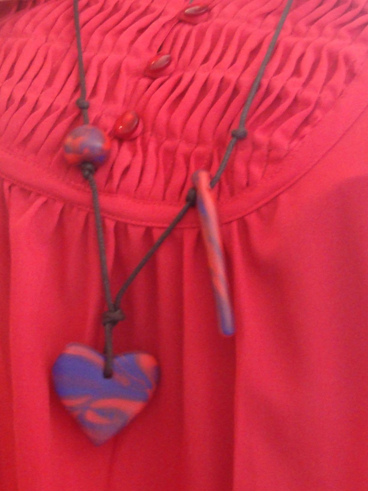 Tämän korun 2-vuotias poikani oli tehnyt minulle päiväkodissa. Sain korun tänä vuonna äitienpäivälahjaksi ja olen käyttänyt sitä usein koska värikin sattui sopimaan uuden tunikan kanssa.