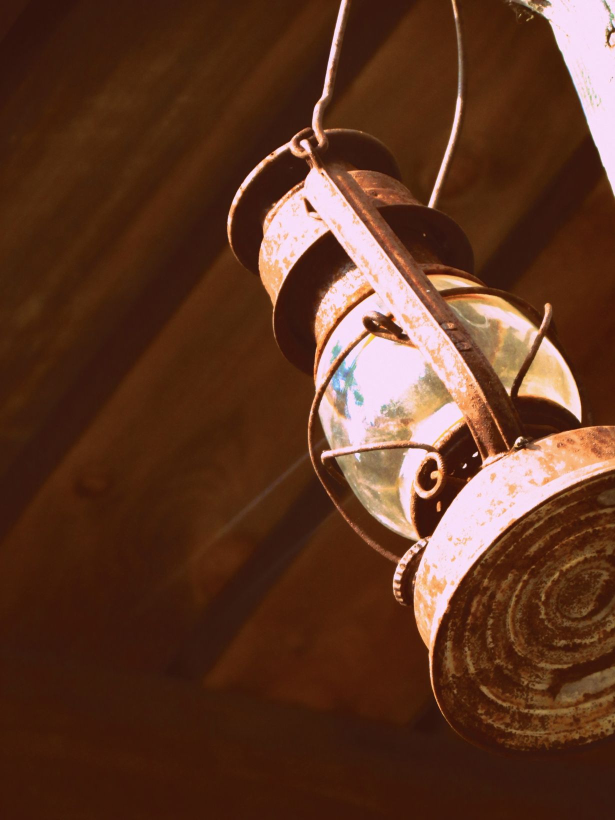 Ajan hammas on vienyt jo osansa lyhdystä, joka on saanut viimeisen leposijansa hirsitalon kuistin koristajana