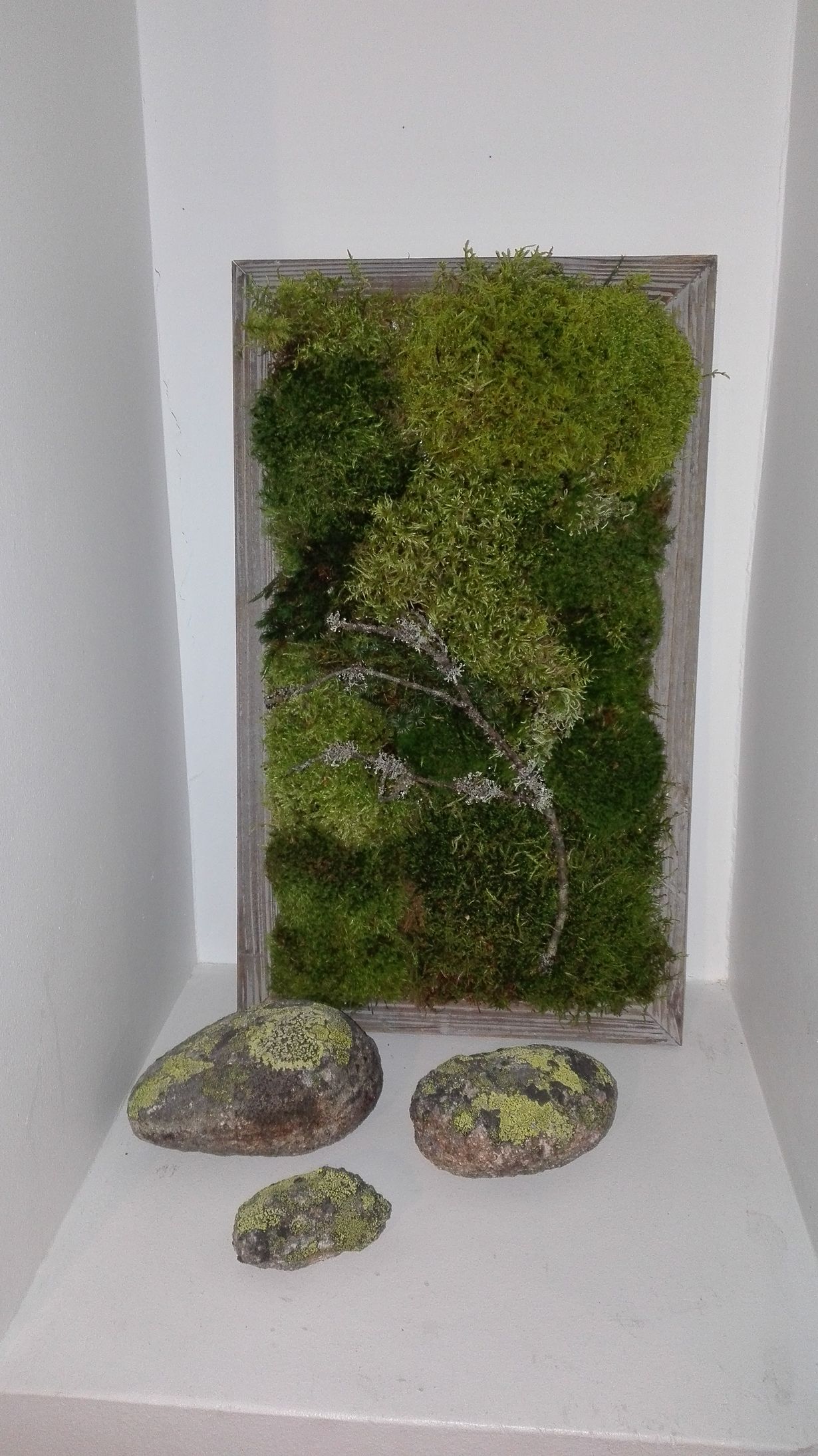 Vanha lato jäi eläkkeelle. Halusin palan lapsuusmuistoja mukaani. Niinpä tuo pala, kappale ladon ovea kehystää nyt sammal-asetelmaa.