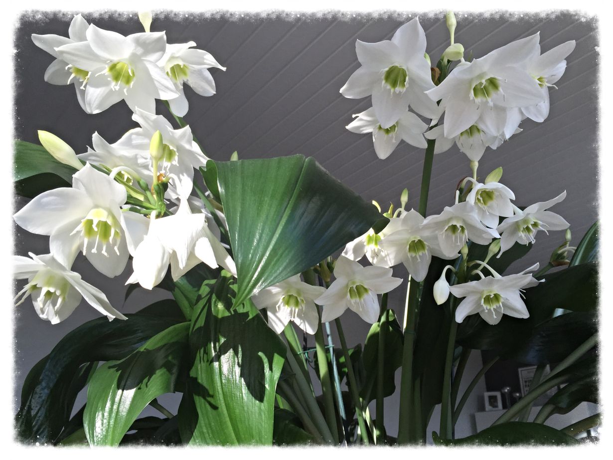 Lapsuudenkodistani äidiltä saamani Amatsoninlilja kukkii pari kertaa vuodessa, alkusyksystä ja keväällä. Välillä kukkavanoja on jopa yli kymmenen niinkuin tässä viime kevään kuvassa.