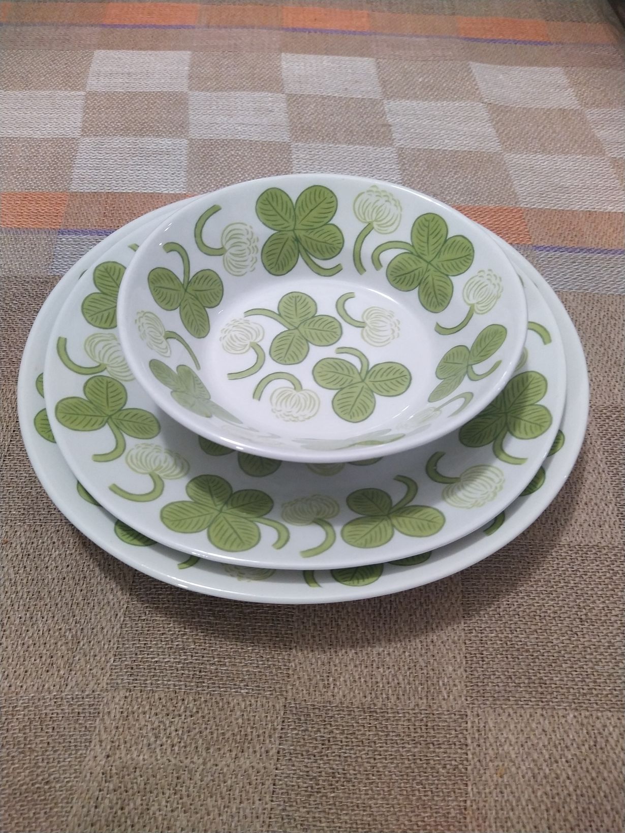 Olen aina löytänyt helposti neliapiloita, niin äiti osti minulle Birger Kaipiaisen apila-astioita 60-luvulla, jolloin niitä tehtiin jokunen vuosi. Olleet juhlakäytössä, tänä vuonna päätin ottaa ne arkikäyttöön ja nauttia niistä päivittäin.