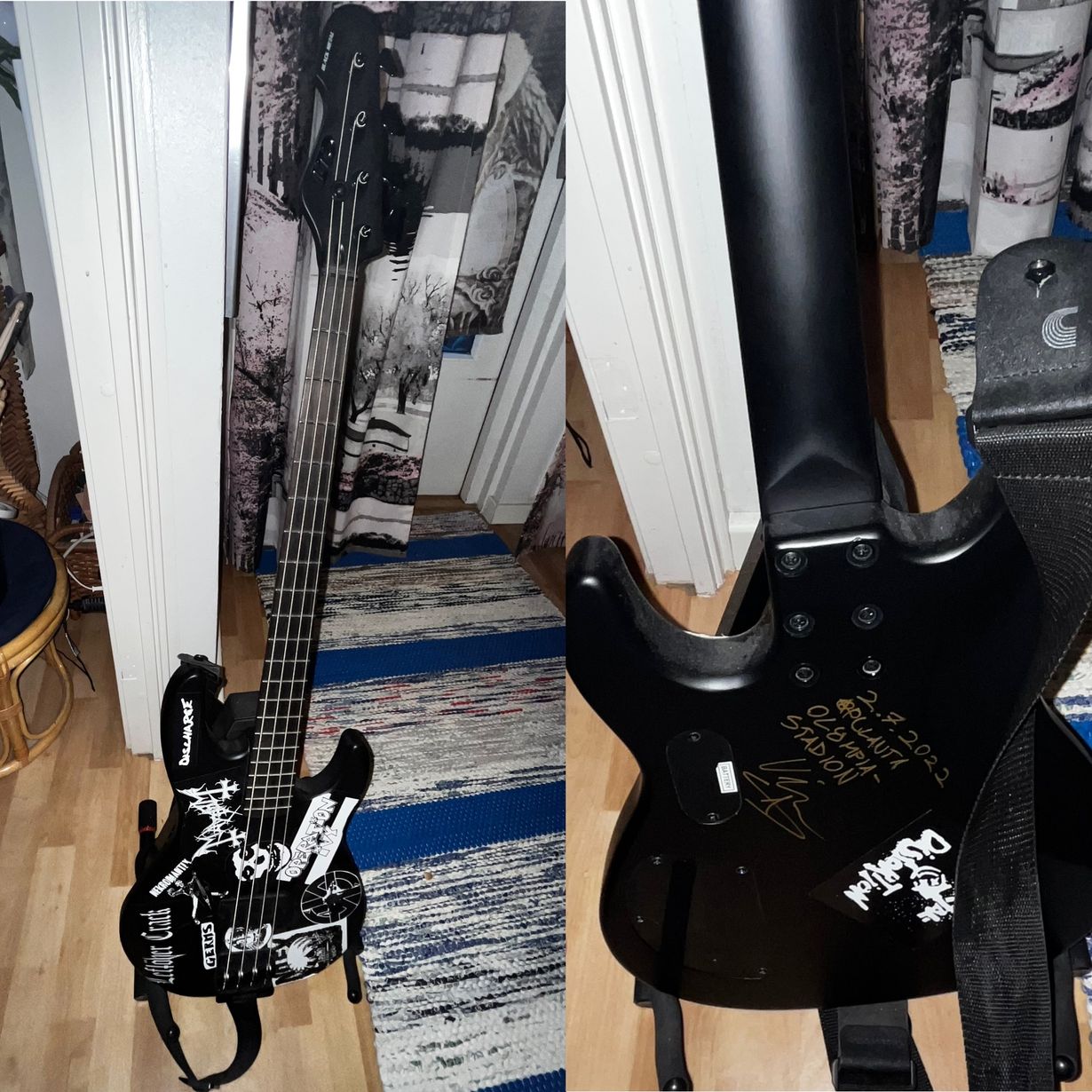 Kerään Apulanta fanituoteitta. Kesällä 2022 apulanta soitti Helsingin olympiastadion keikan uransa 40v juhlan kunniaksi. Ville Mäkinen laittoi keikan jälkeen bassonsa hyväntekeväisyys huutokauppaan Musamaailman kautta jonka tuotto ohjattiin hyväntekeväisyyteen Kouvolaa nuorisotyöhön. Itsehän en bassoa soittele mutta koristeena olohuoneen nurkassa basso toimittaa hienoa virkaansa ja on ehdottomasti keräilyni helmi
