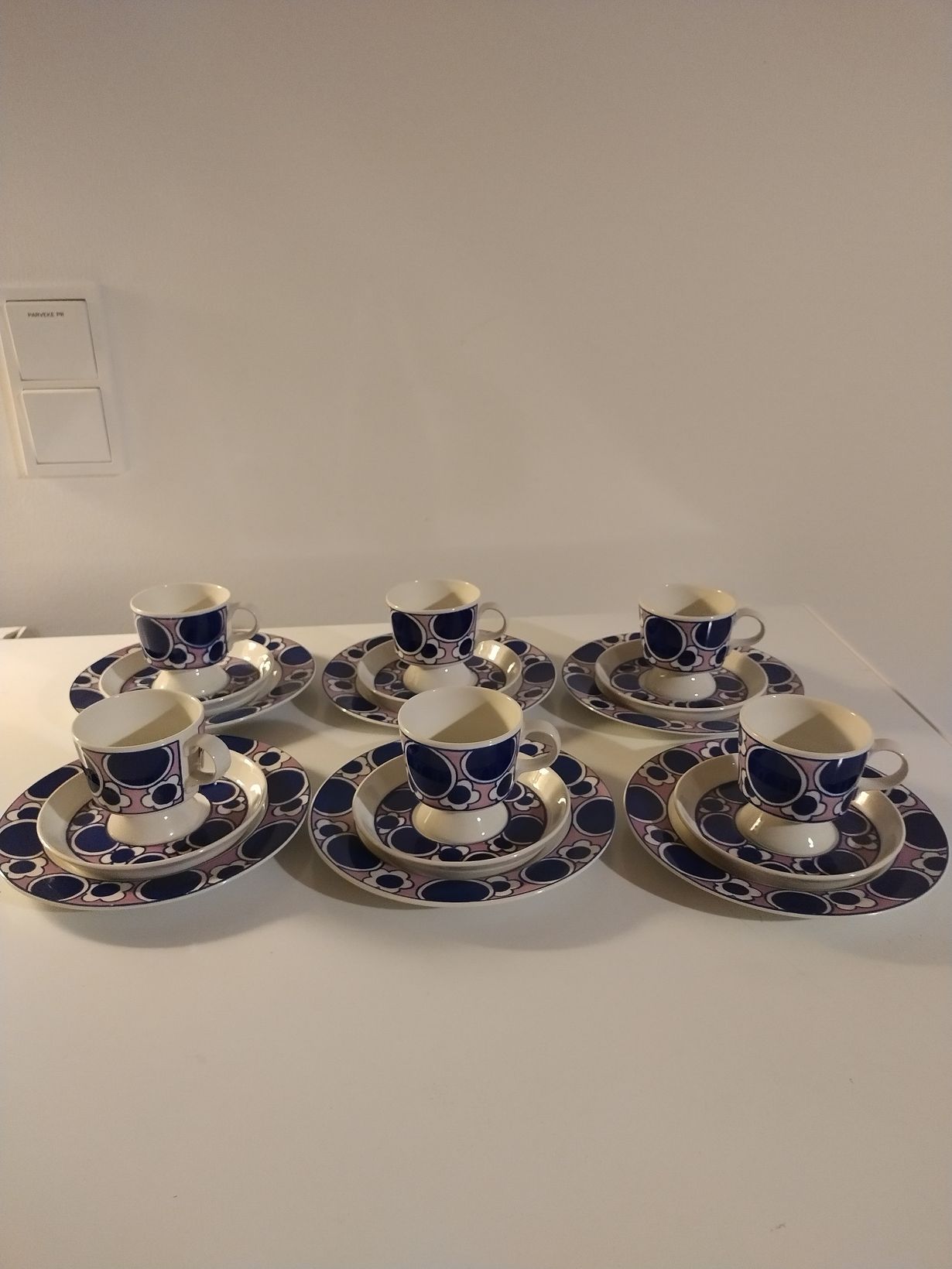 Nämä ihanat kahvikupit löytyivät äidin kaapista. Kupit ovat olleet käyttämättömänä. Toivottavasti joskus saan ne esille koristeeksi, käyttää niitä en henno. Kahvikupit on ovat olleet tuotannossa vuosina 1969-1972.