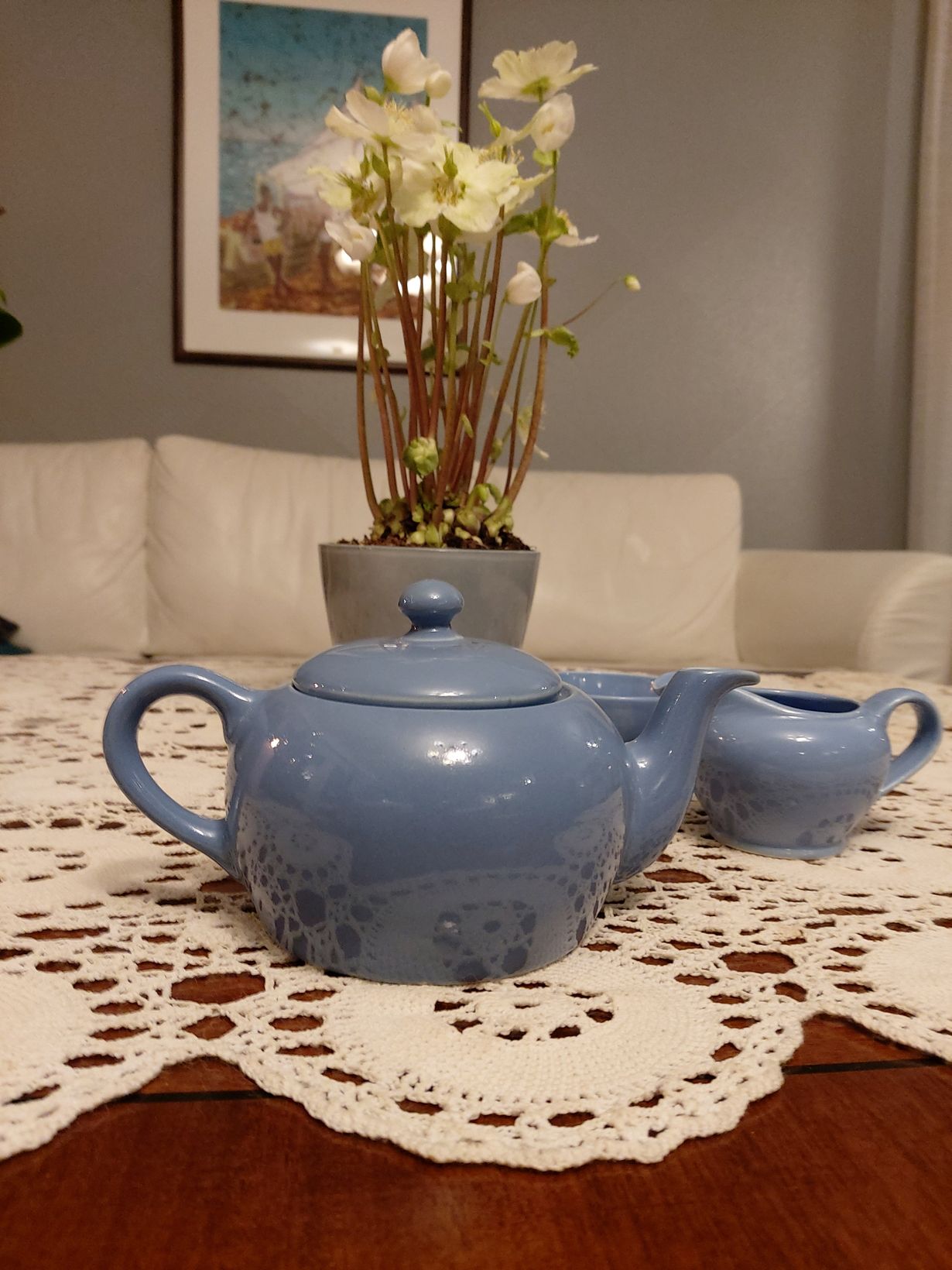 Ehkä vähän keräilen teekannuja. Tämän tarina alkaa siitä, että lapsena halusin aina syödä viilini sinisestä pienestä sokerikkokupista. Sain nuo pienet Arabian sokerikon ja kermakon perintönä, ja ihastuksekseni löysin sarjaan kuuluvan söpön teekannun, mikä onnenpotku!