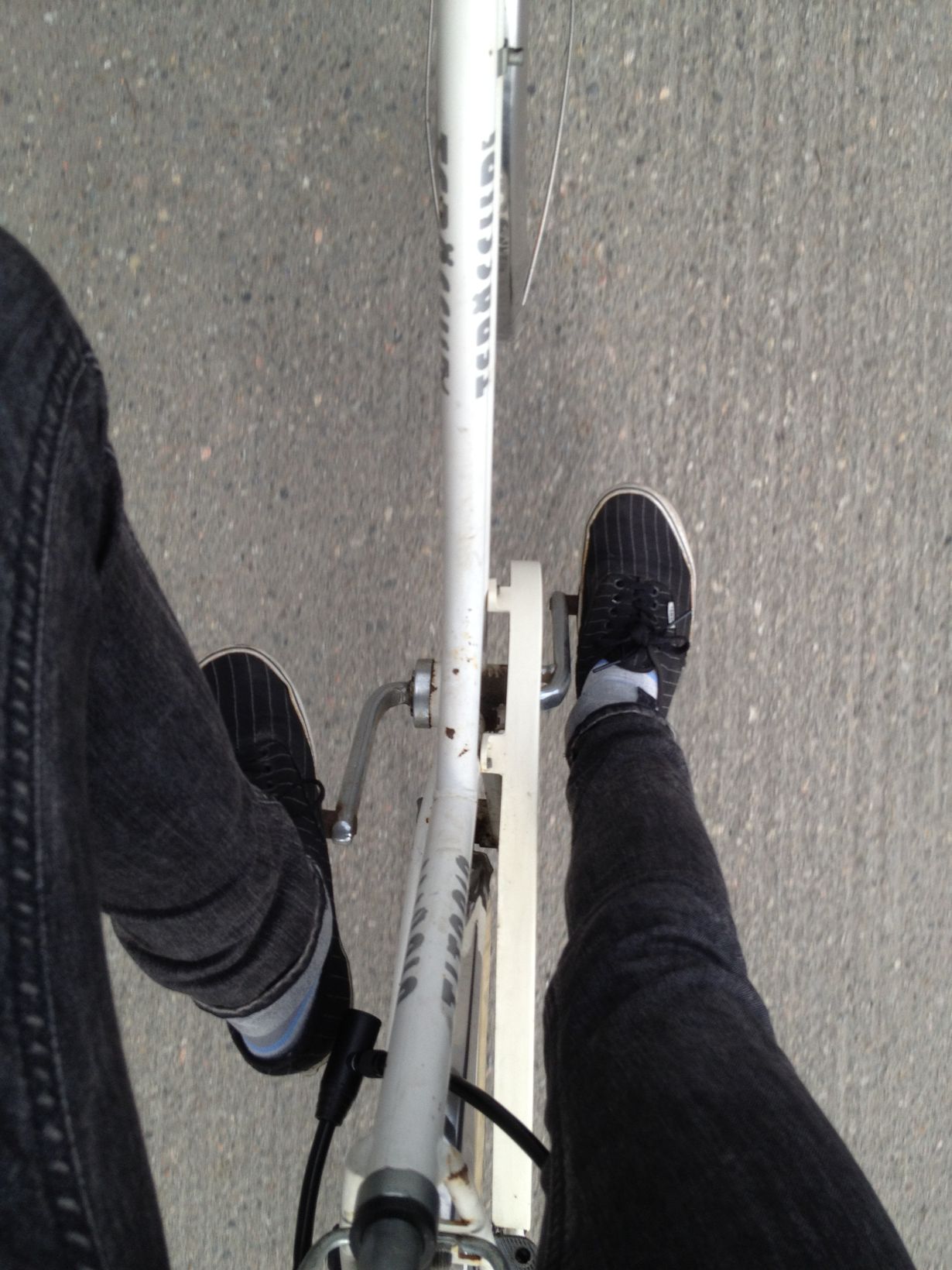 ..Ja miksei pyörälenkillekin. Kyseiset Vansin kengät ostin muutama vuosi sitten, ja ajattelin että sopivat kivasti mustien farkkujen ja puvuntakin kanssa rennompiin juhlatilaisuuksiin. Jäivät kuitenkin päivittäiseen käyttöön melko nopeasti. Nämä jalassa on kuljettu auringonpaisteesta sadesäähän, ruisrockista suku-kokoontumiseen. Se ikävä kyllä alkaa jo hieman kenkien kunnosta näkyä, mutta silti nämä jalassa on ilo astella.