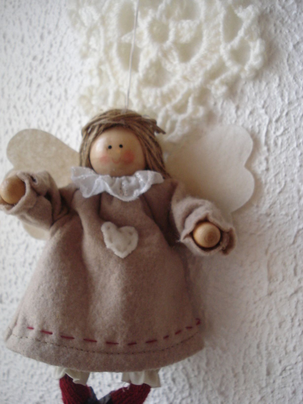 Pari vuotta sitten joulukukan yhteydessä tullut enkeli on nyt koristanut keittiömme seinällä siitä asti. Asumme äitini kanssa yhdessä ja jaamme keittiön - jotenki enkeli on sopivan arkinen ja muummomainen meille kahdelle mummolle!.