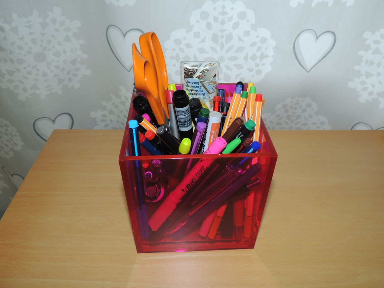 Tämä Palasetin purkki on riittävän iso, että ainakin suurin osa askarteluissa käytettävistä kynistä siihen sopii. Jouluaskarteluissa poistui taas muutama joukosta :-)