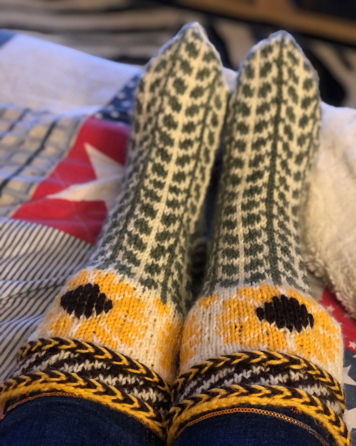 Isosiskoni on taitava neulomaan ja tilasin häneltä auringonkukkasukat, koska rakastan auringonkukkia. Sain ne siskolta syntymäpäivälahjaksi.