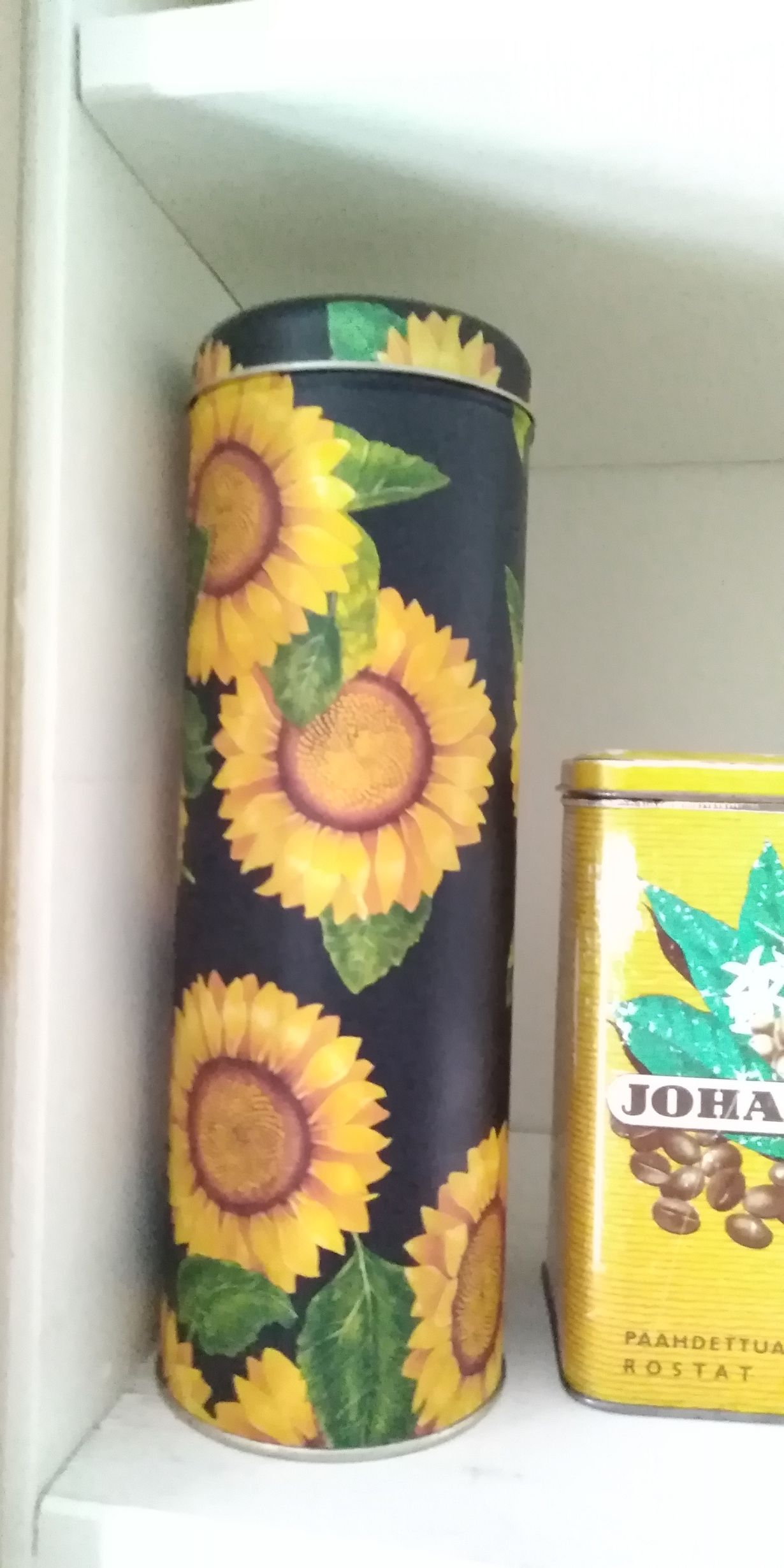 Oli aivan pakko ostaa tämä peltinen toffeekarkkipurkki lentokentän Tax freestä Italiasta matkalla Riminiltä kotiin. Nykyään spagettipurkkina toimiva muisto palauttaa aina mieleeni Firenzen retken, jolta palatessa aurinko laski jättimäisen kukkivan auringonkukkapellon taakse samalla kun autossa soi Eros Ramazzottin Piu Bella Cosa; tunnelma oli ikimuistoinen.
