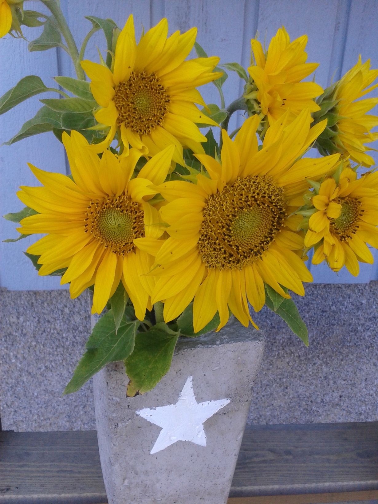 Omakasvattamat auringonkukat omatekemässä ruukussa :)