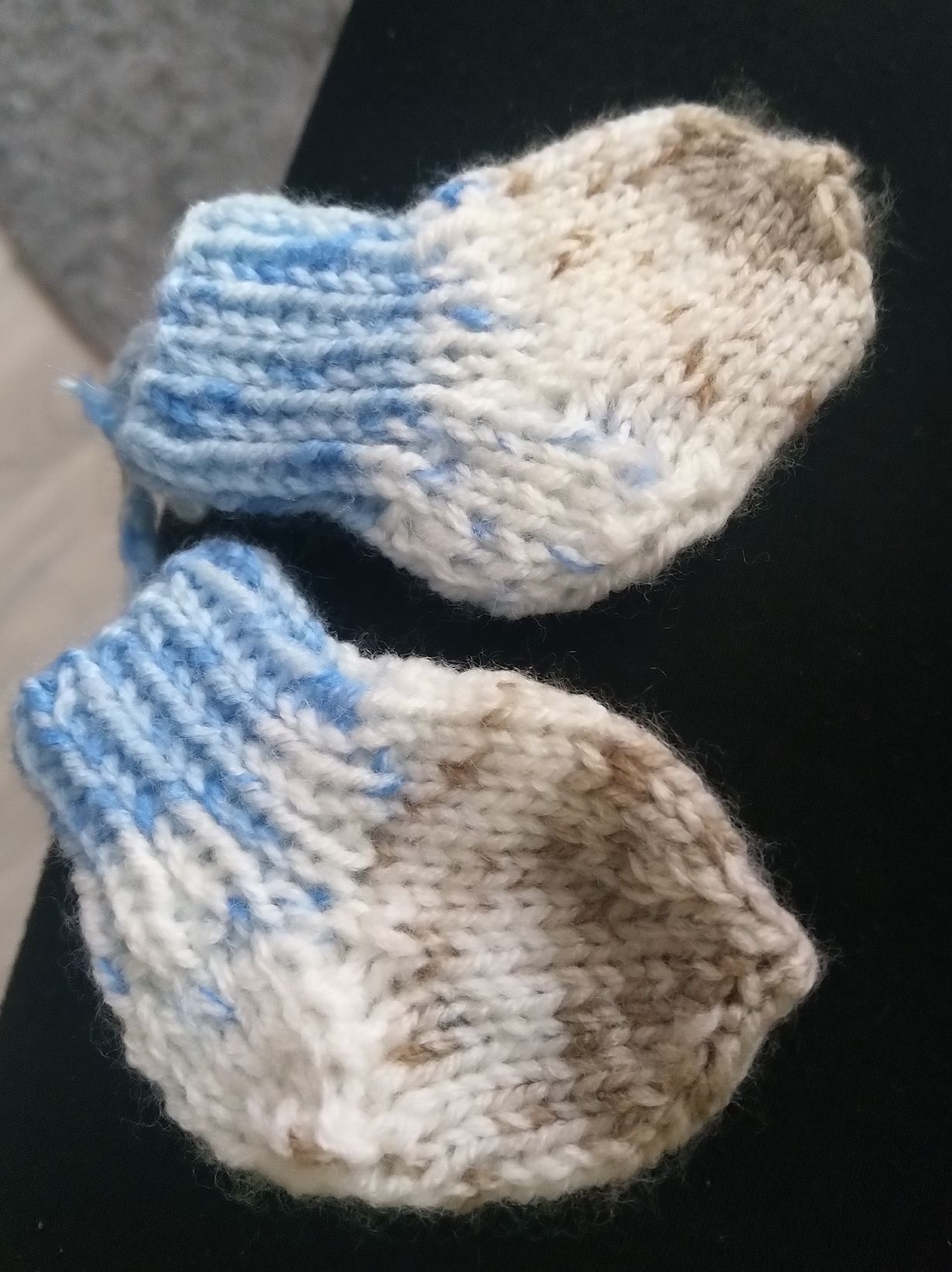 Ystävän kutomat mini-mini-villasukat avaimenperäksi.