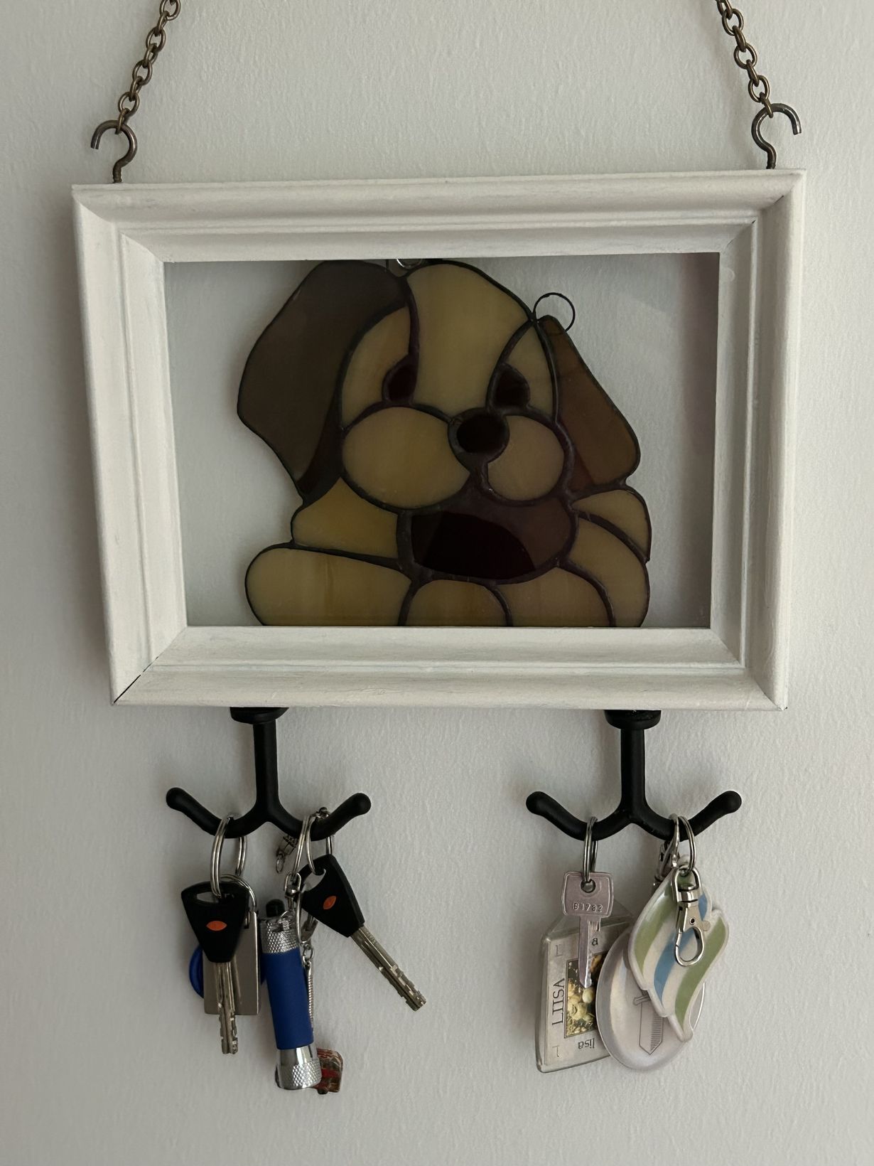 Lähetä kuvakisaan kuva avainnaulakostasi - voita Lapuan Kankureiden villahuopa Avain naulakko Liisi 12.7.2025 klo 13:37 Avain naulakko, Tiffany lasityö Tiibetin spannielimme