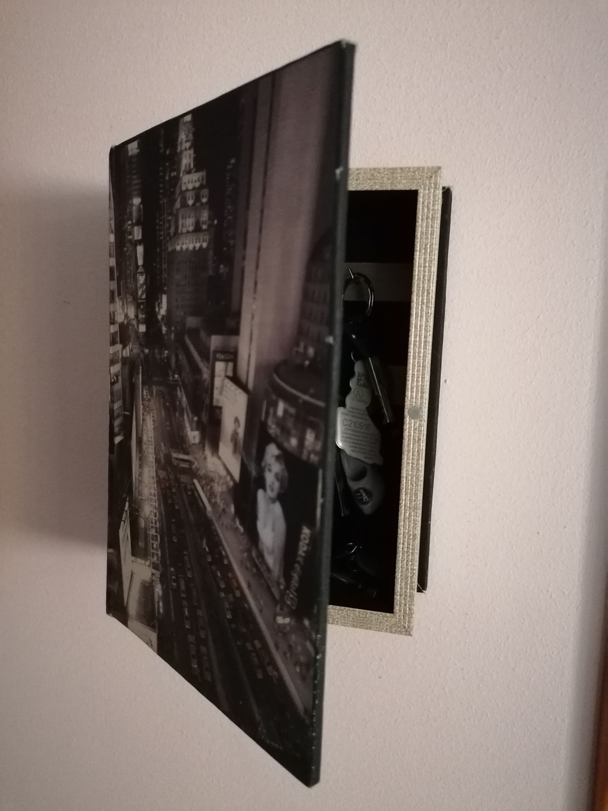 Etsin pitkään avainkaappia, mutta en löytänyt kivaa. Joten askartelin sen kauniista säilytyslaatikosta.