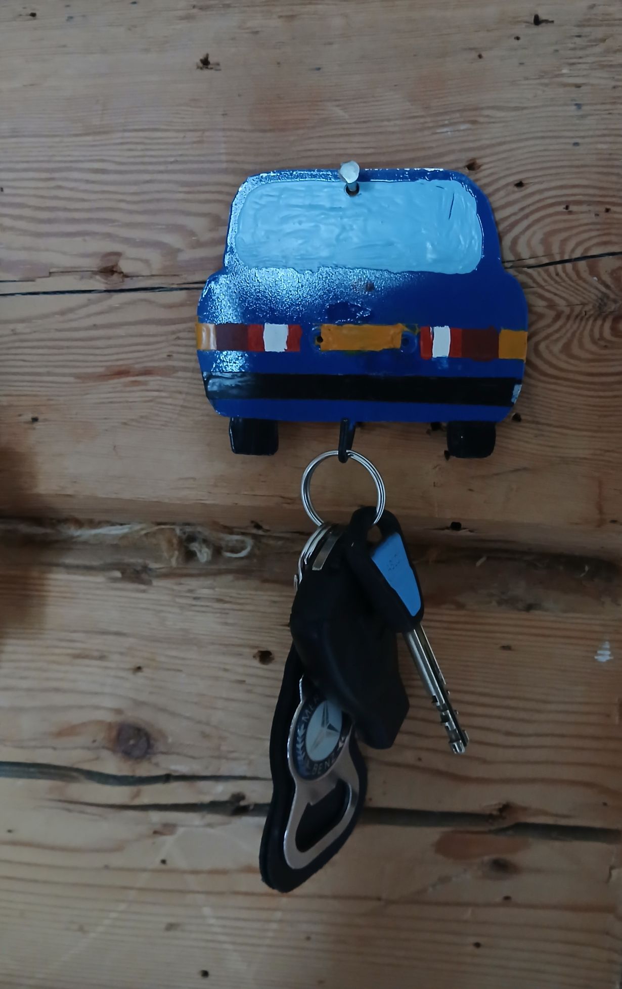 Poika teki alakoulussa isälle lahjaksi avainnaulakon. Isän sininen mersu tarvitsi oman paikan avaimilleen.