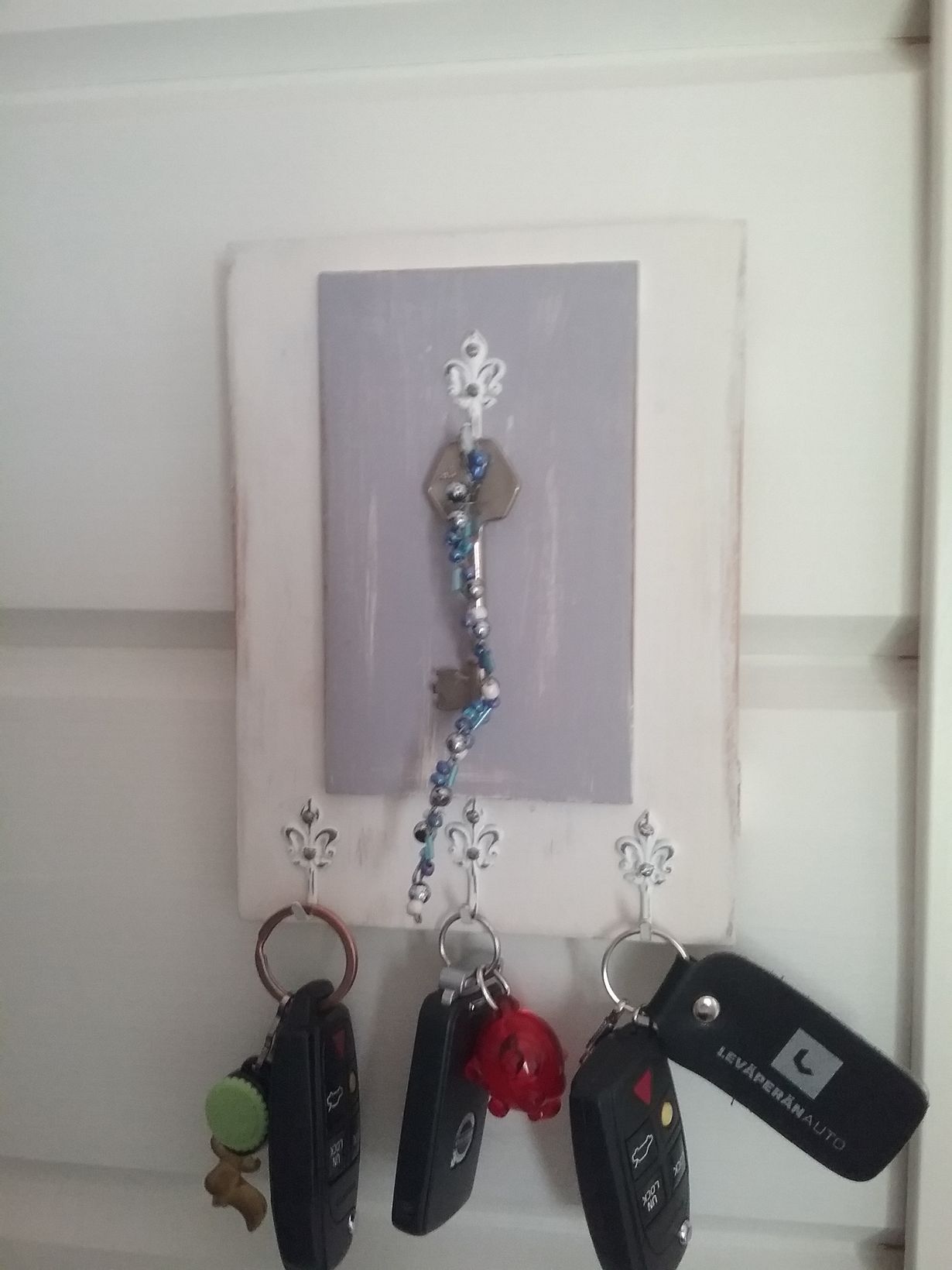 Tein itse tämän pikkuruisen avainnaulakon entisen kotimme vanhoista kaapin materiaaleista,kun muutimme uuteen kotiin.Koristeena on entisen kodin oven avain.